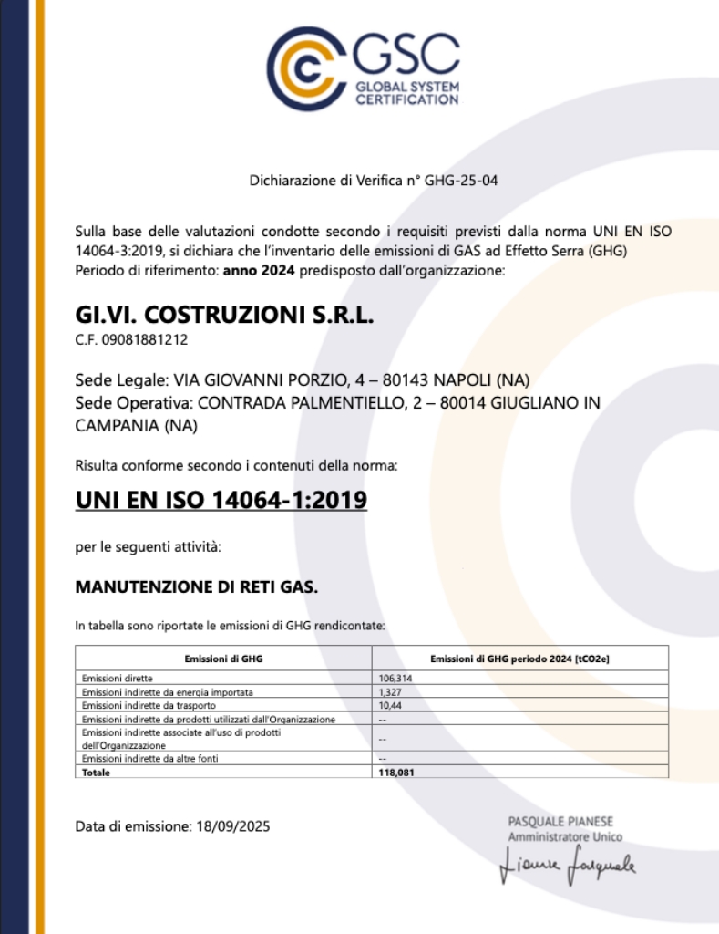 Certificazione: ISO 14064-1:2019