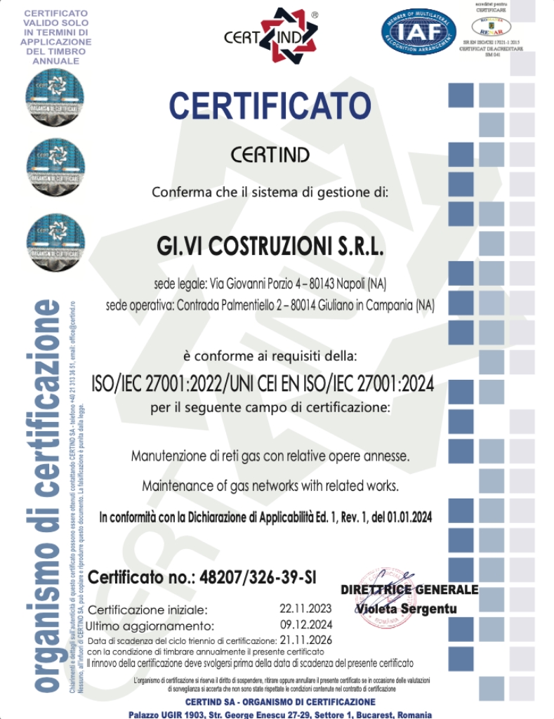 Certificazione: UNI 27001